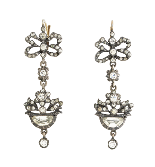 Improvements in glassmaking in the 17th century allowed artisans to create highly refractive, colourless glass called paste, that could convincingly echo the sparkle of diamonds. Quickly becoming popular, by the 18th century, paste had an extraordinary level of refinement under jewellers such as Georges Frédéric Strass, whose name became synonymous with superior imitation stones. Strass’s foiled pastes, admired for their brilliance and precision, were mounted in carefully wrought silver and gold settings that reflected the same attention to detail found in fine jewellery.