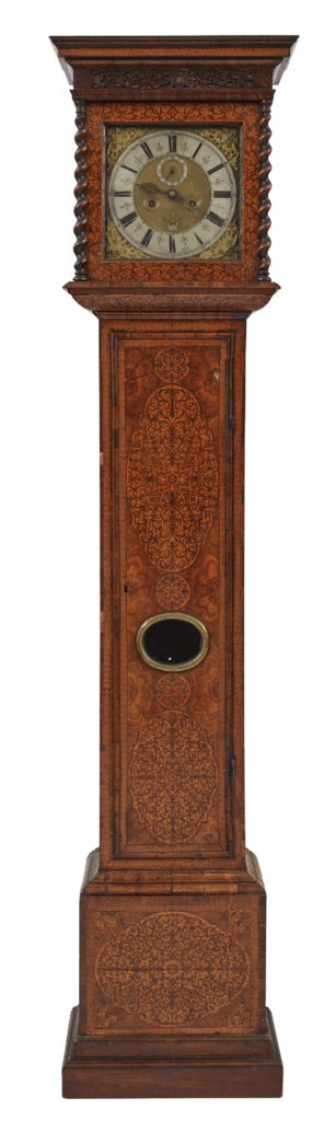 A William & Mary Seaweed Marquetry longcase clock. Sold for $32,500