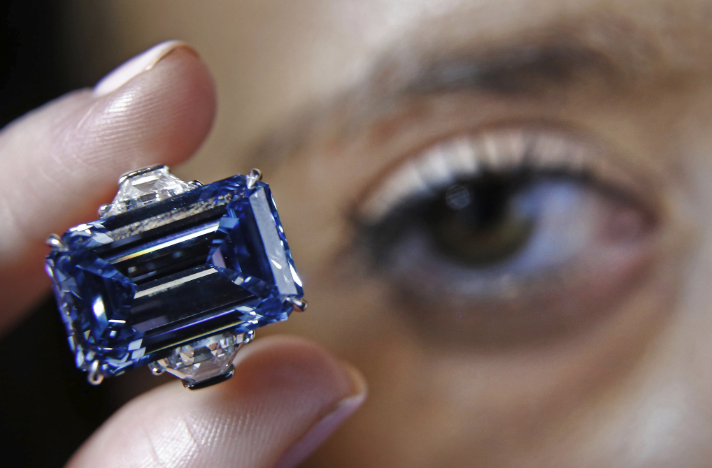 The Oppenheimer Blue, 14.62 carat diamond at Christie’s Auction House in London / Alamy
