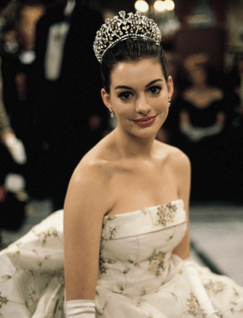 Anne Hathaway wearing a replica Bourbon-Parma Tiara by Chaumet in Princess Diaries, 2001 / Alamy
