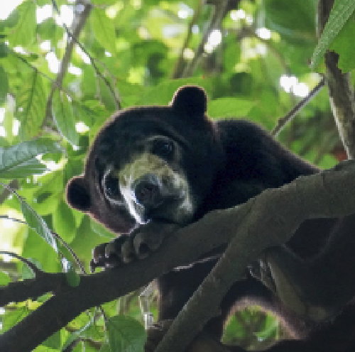 Mano the sun bear in forest school during rehabilitation. Photo © JAAN